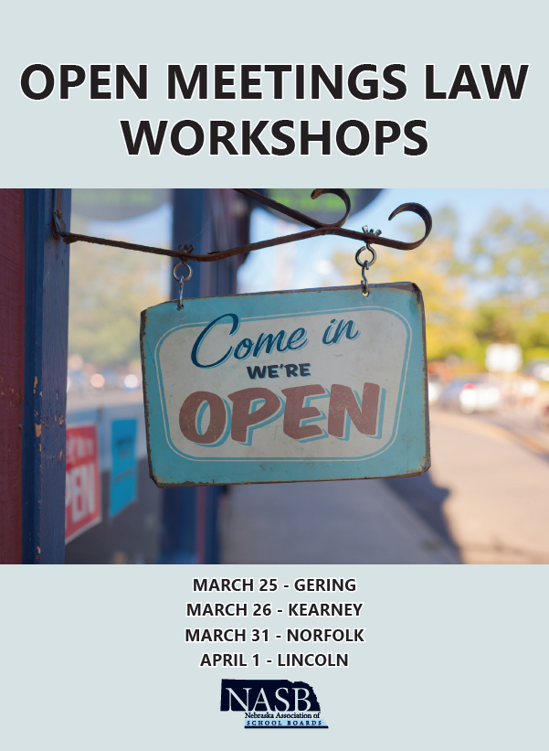 - We’re excited to invite you to an informative workshop on the Nebraska Open Meetings Law, designed to help you understand the importance of transparency and compliance in public meetings. This interactive, scenario based, workshop is specifically designed for locally elected officials. Attendance at this workshop will provide valuable insights and practical tips. Join us for an engaging session with NASB Executive Director, John Spatz. He will break down the essentials, answer your questions, and share best practices. Don’t miss this opportunity to enhance your knowledge and stay informed.